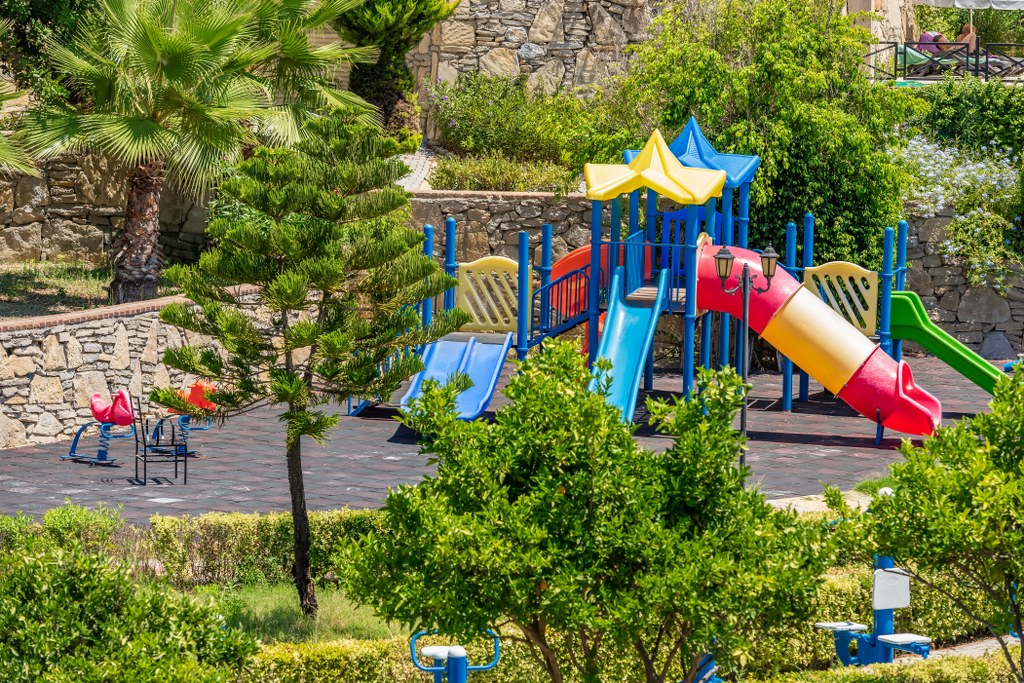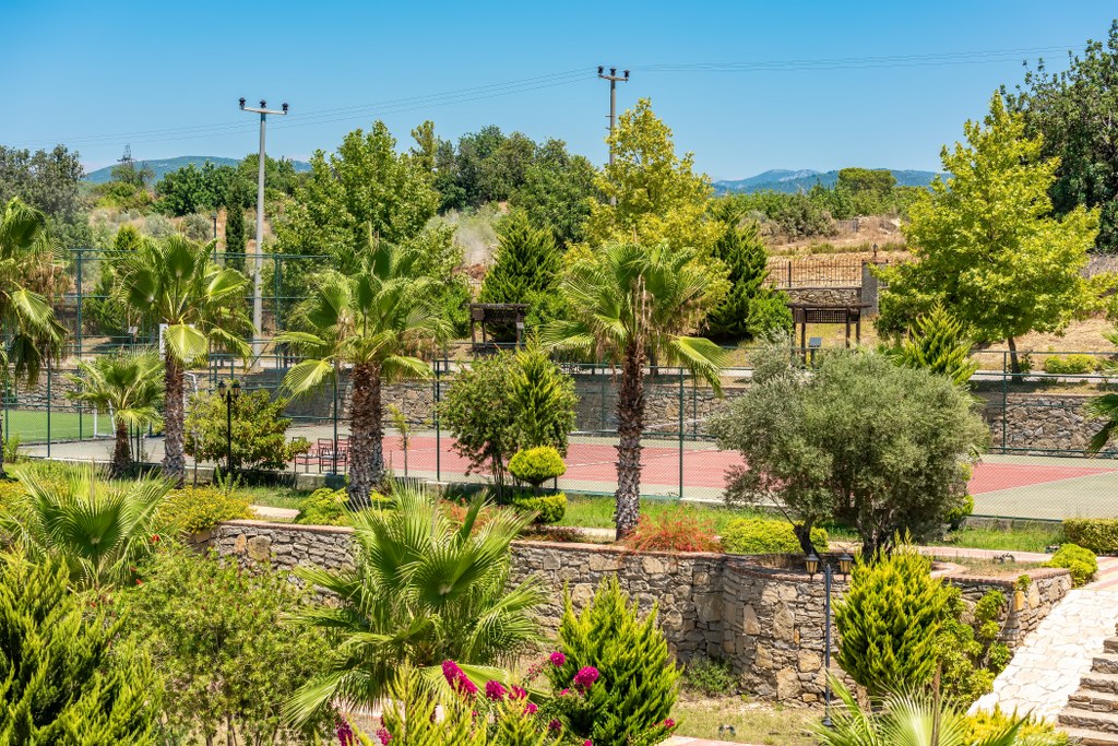 На личной придомовой территории расположен открытый бассейн, зелёный сад, беседка и барбекю. На территории комплекса оборудован открытый и детский бассейн с водными горками, крытый зимний бассейн, сауна, Турецкая баня, фитнес, детская площадка, парковка, теннисный и баскетбольный корт, маркет и генератор. Работает смотритель.