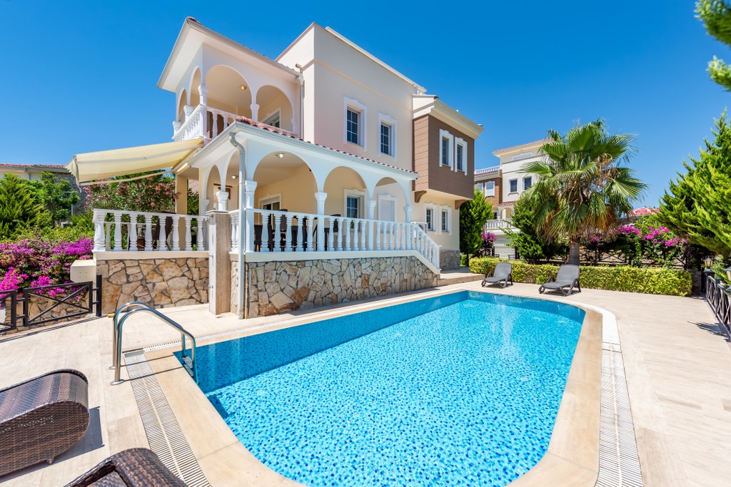 На продажу представлена просторная частная вилла с ухоженной придомовой территорией. Она расположена в масштабном комплексе вилл в районе Инжекум.