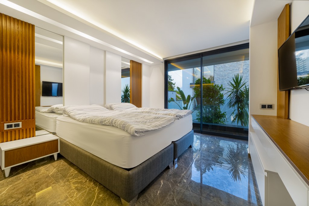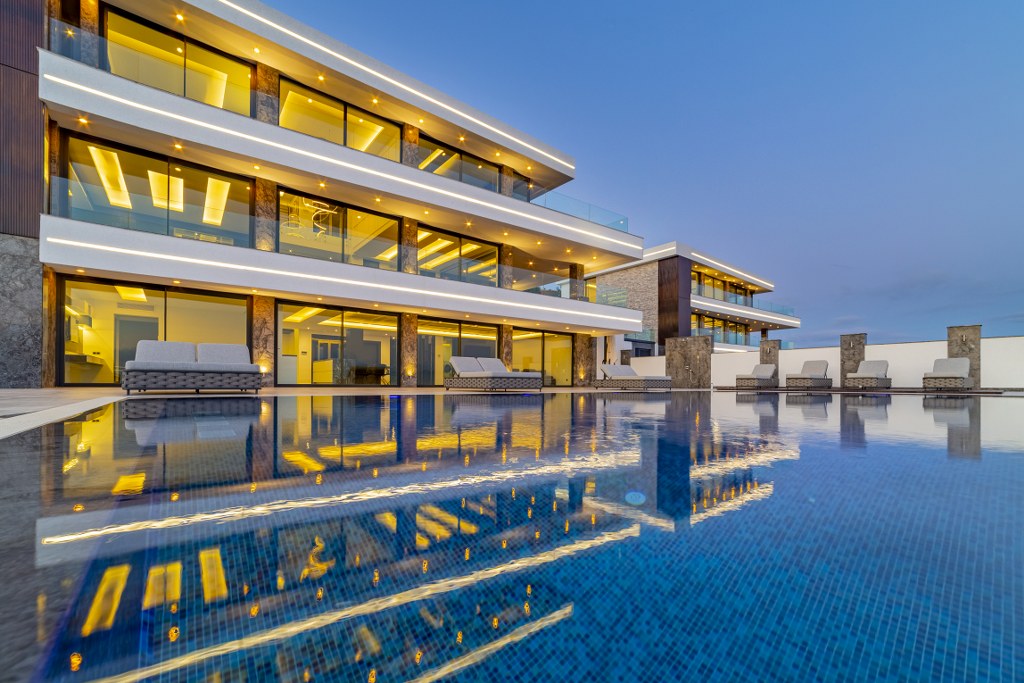 Земельный участок вилл составляет 1658 м2, площадь использования каждой виллы составляет 516 м2 и полностью меблирована.
