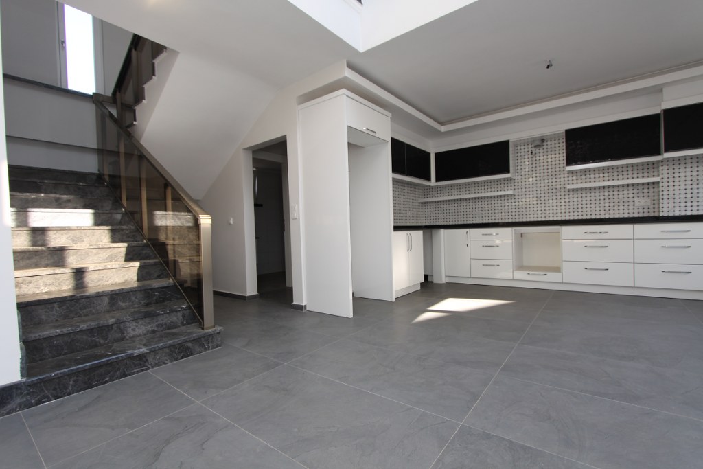 Новая вилла имеет планировку 3+1, а её жилая площадь составляет 233 кв.м. Здесь оборудована гостиная комната, кухня открытого американского типа, кладовка, 3 ванные комнаты, балкон, 3 просторные спальни, гардеробная комната и огромная терраса. А так же есть возможность сделать дополнительный верхний этаж на 72 кв.м.